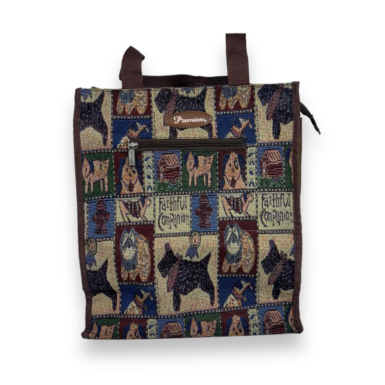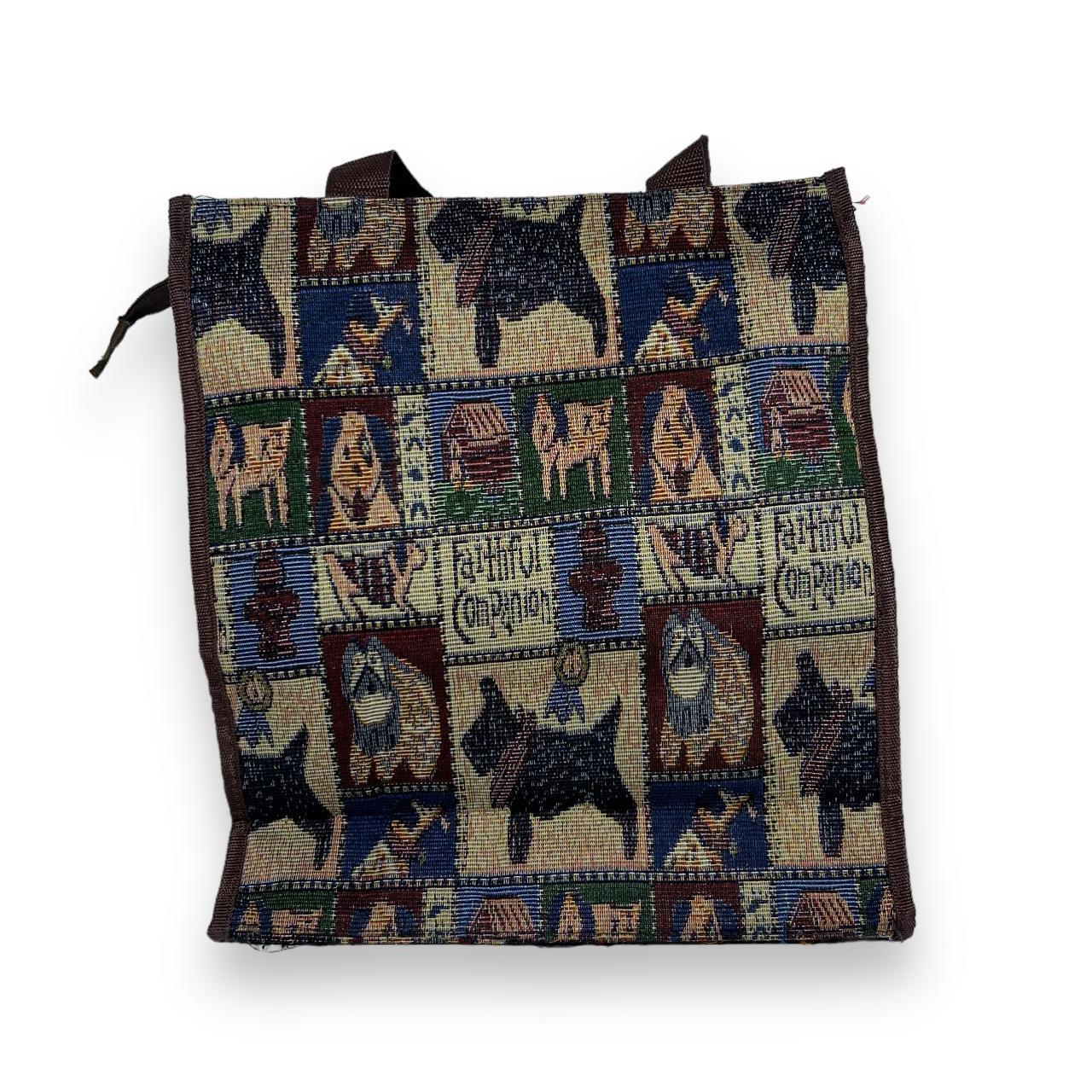 Early 00's PREMIER "Faithful Companion" Dog Puppy Tapestry Style Woven Pattern Carry Tote Bag