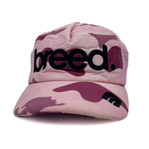 Early 00’s BREED. Embossed Spellout Pink Camo Print Mesh Trucker Baseball Cap