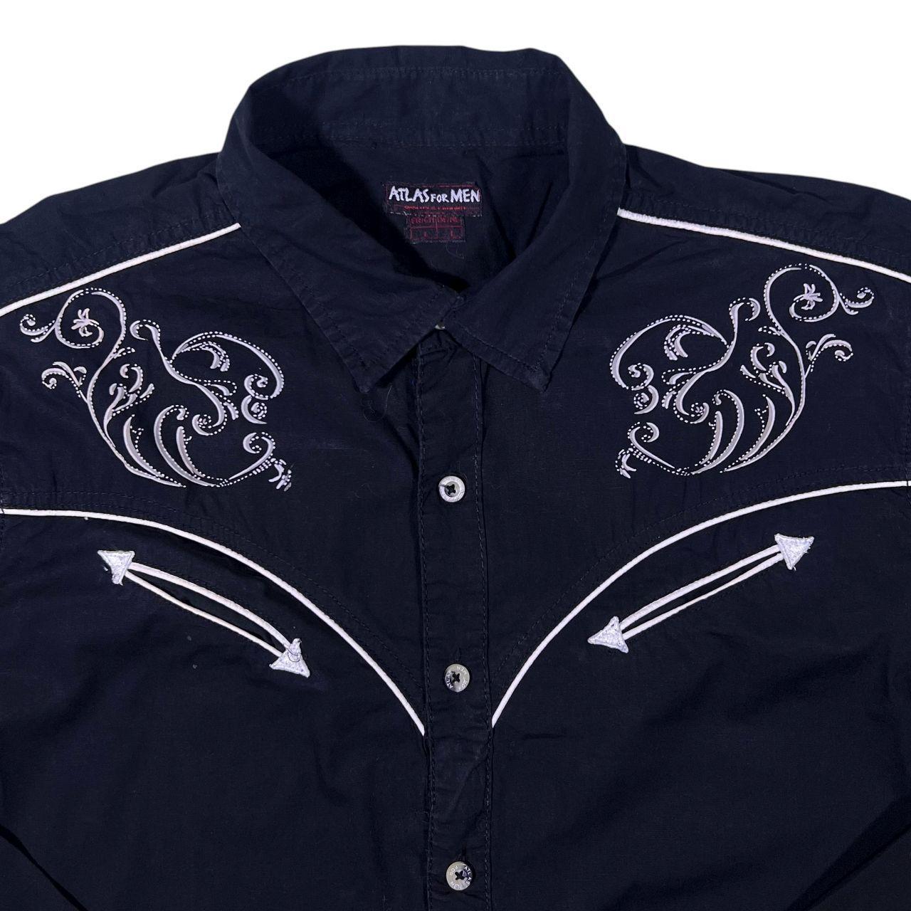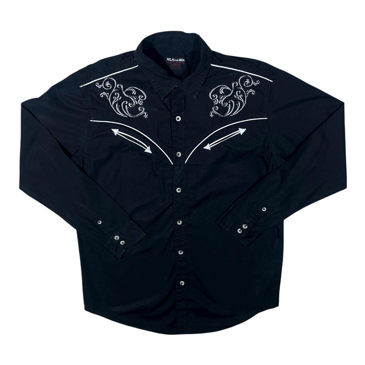 Atlas For Men Cowboy Western Black Cotton Long Sleeve Shirt