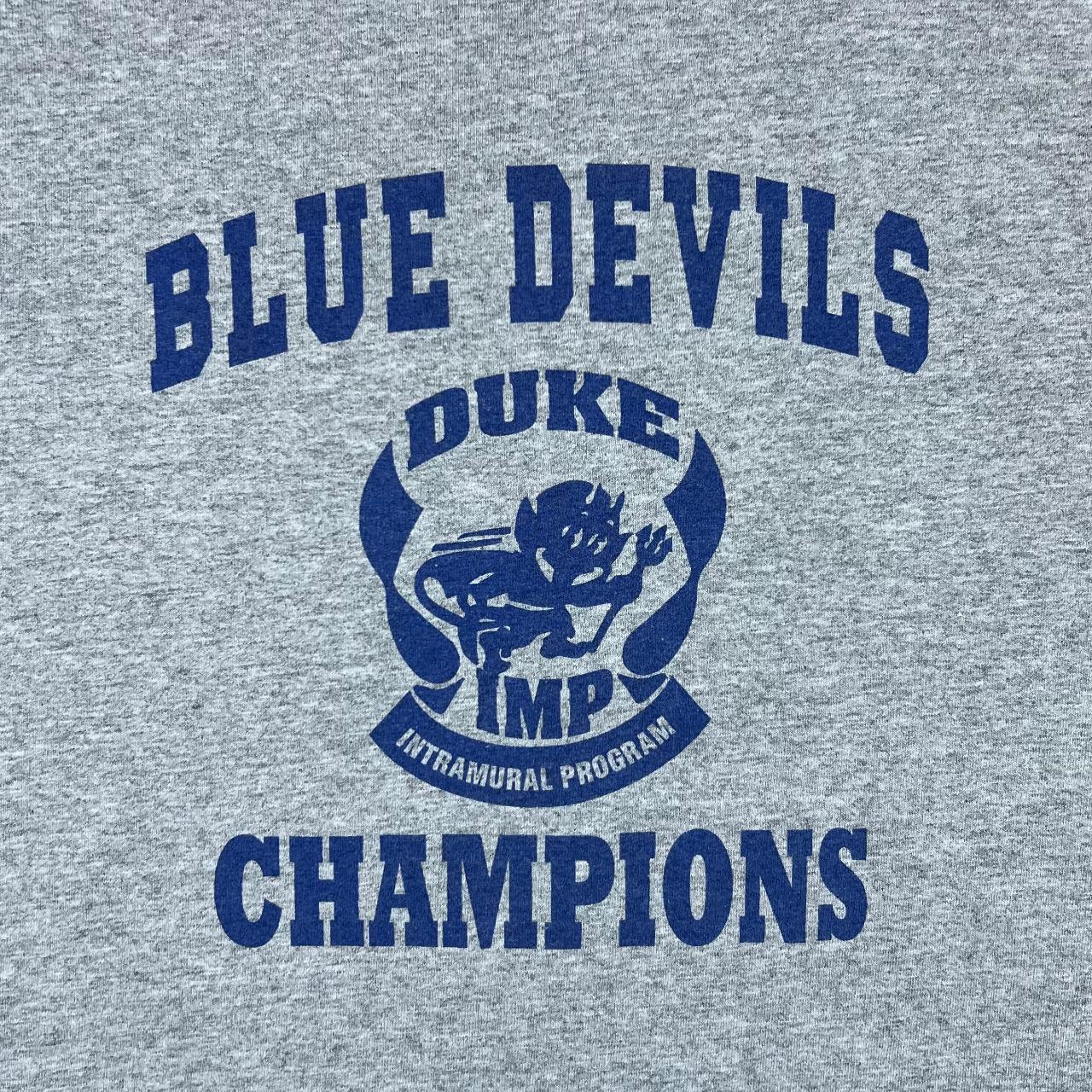 Early 00's DUKE BLUE DEVILS "Champions" College Spellout Graphic Grey T-ShirtSize: Large (See measurements)Colour: GreyDetail: Graphic spellout print to front and back Condition: Light general wear as expected Measurements: Pit to Pit: 22”Length: 30"Shoulder to Cuff: 8..5"#11508