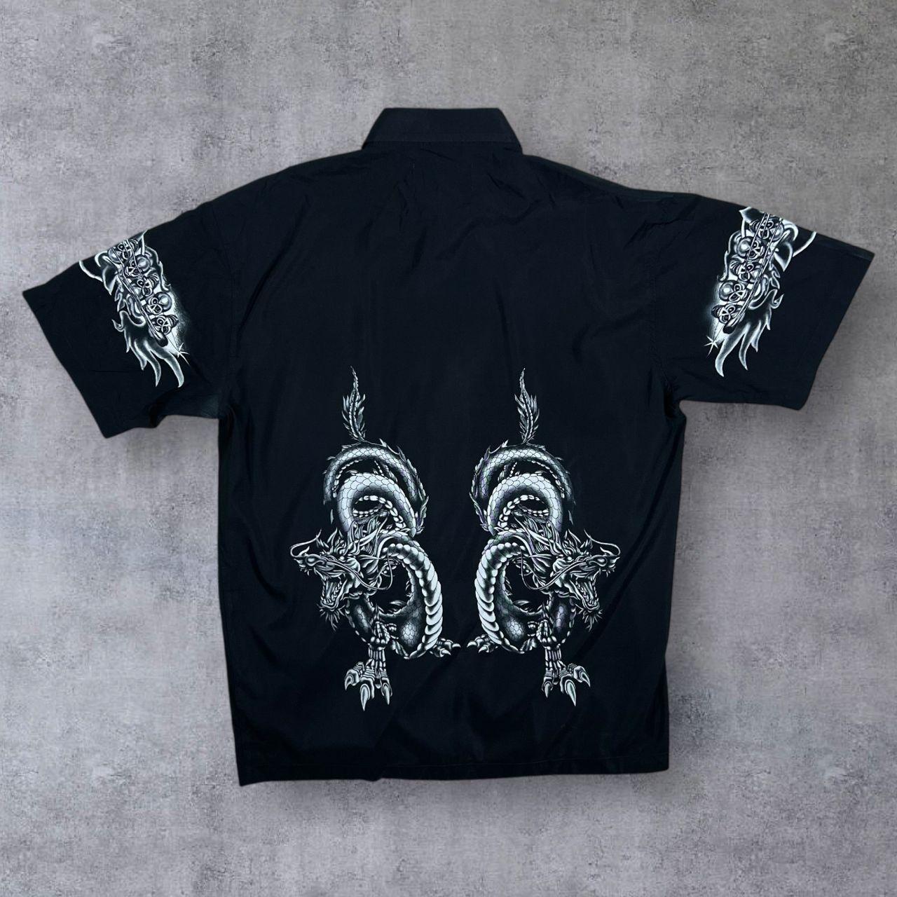 Early 00's Freewear Skate Gothic Y2K Tribal Dragon Graphic Black Short Sleeve Shirt
