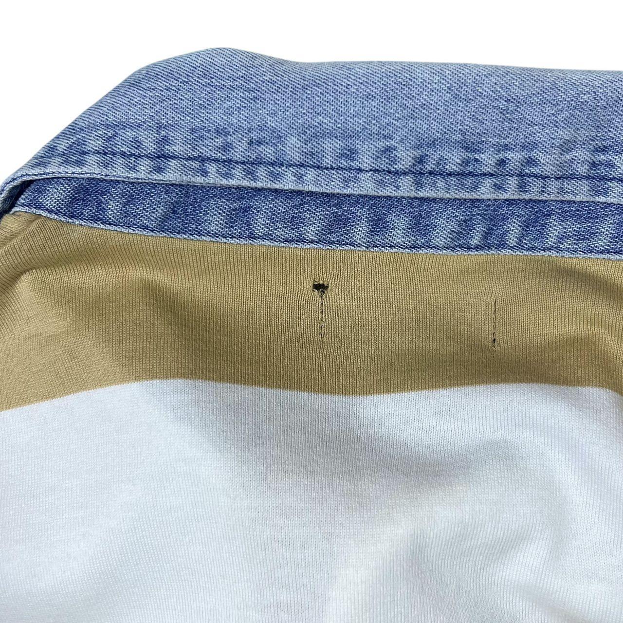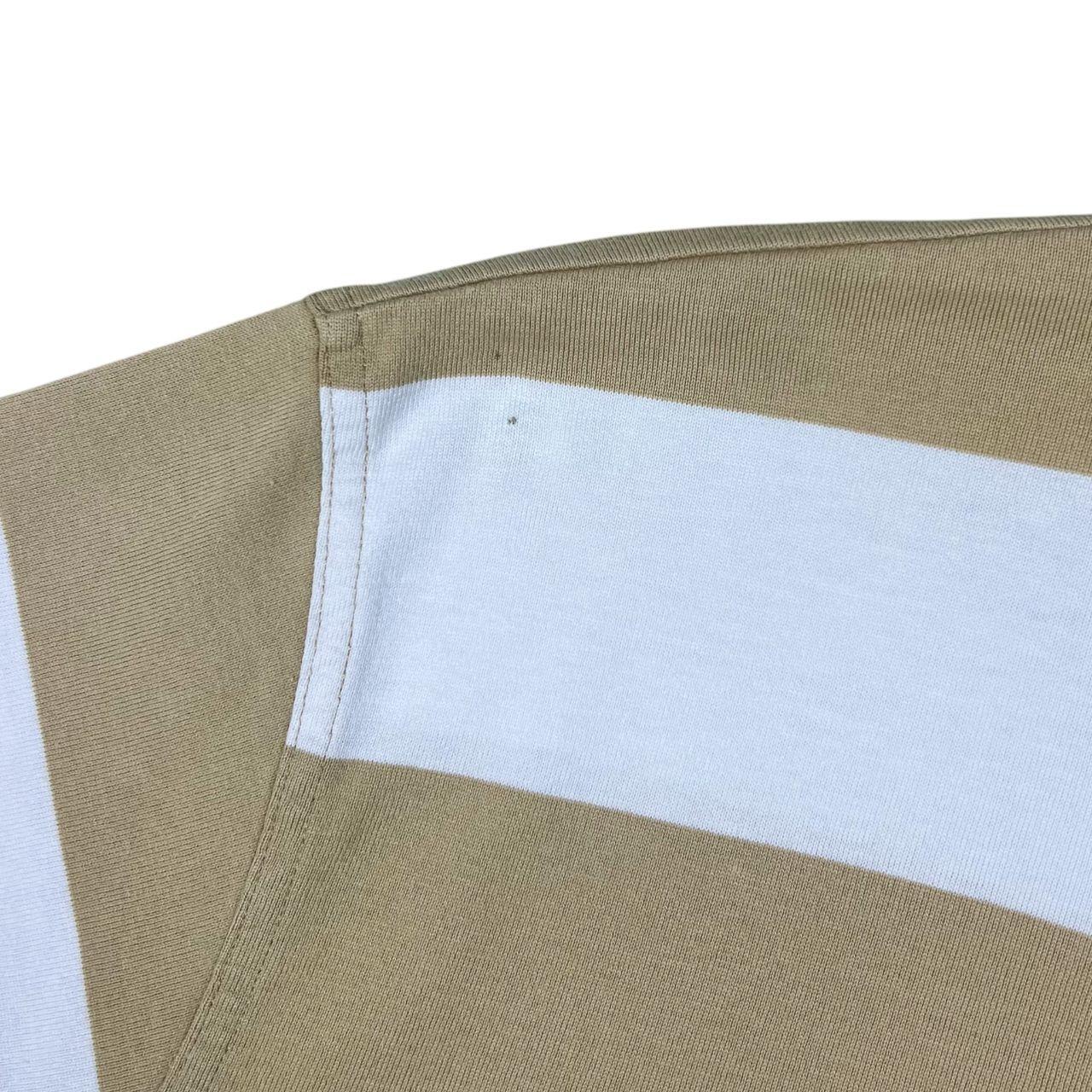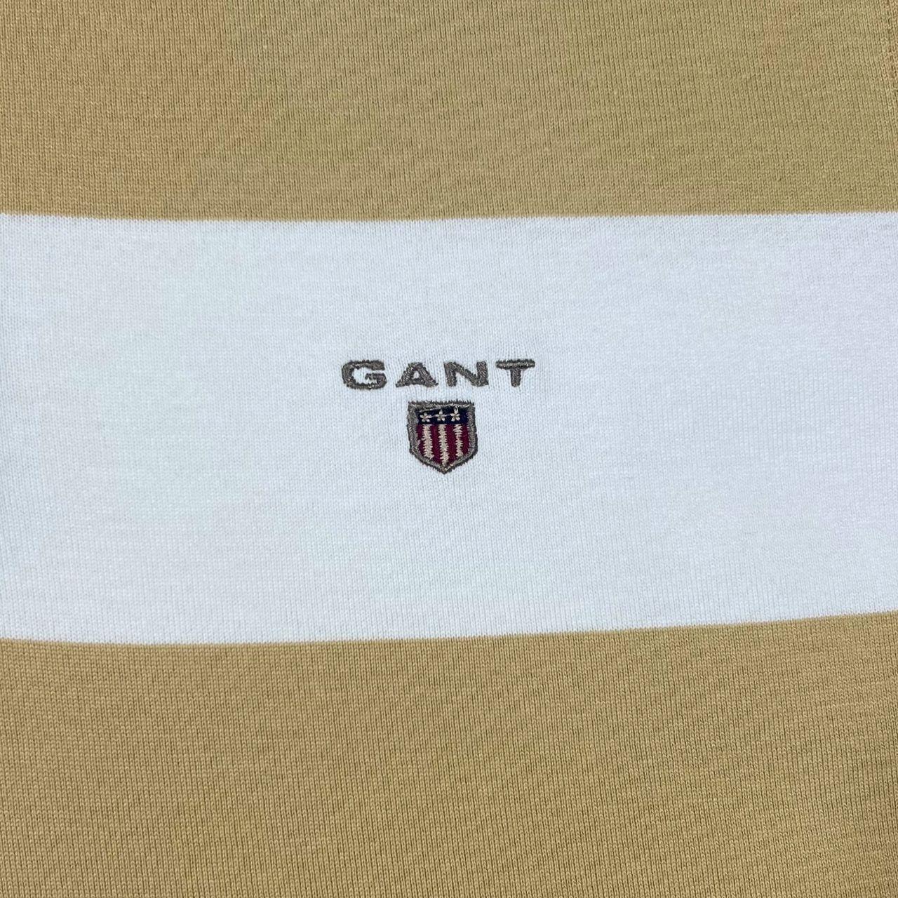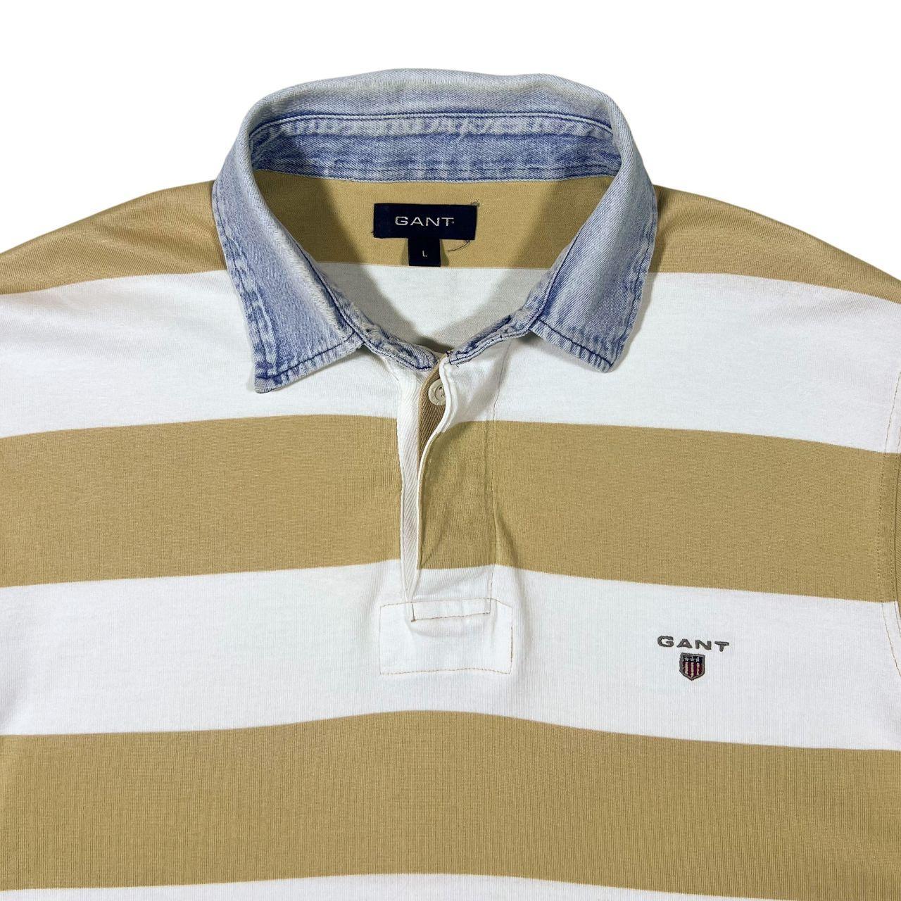 GANT Embroidered Mini Logo Denim Collared Beige White Striped Short Sleeve Polo Shirt