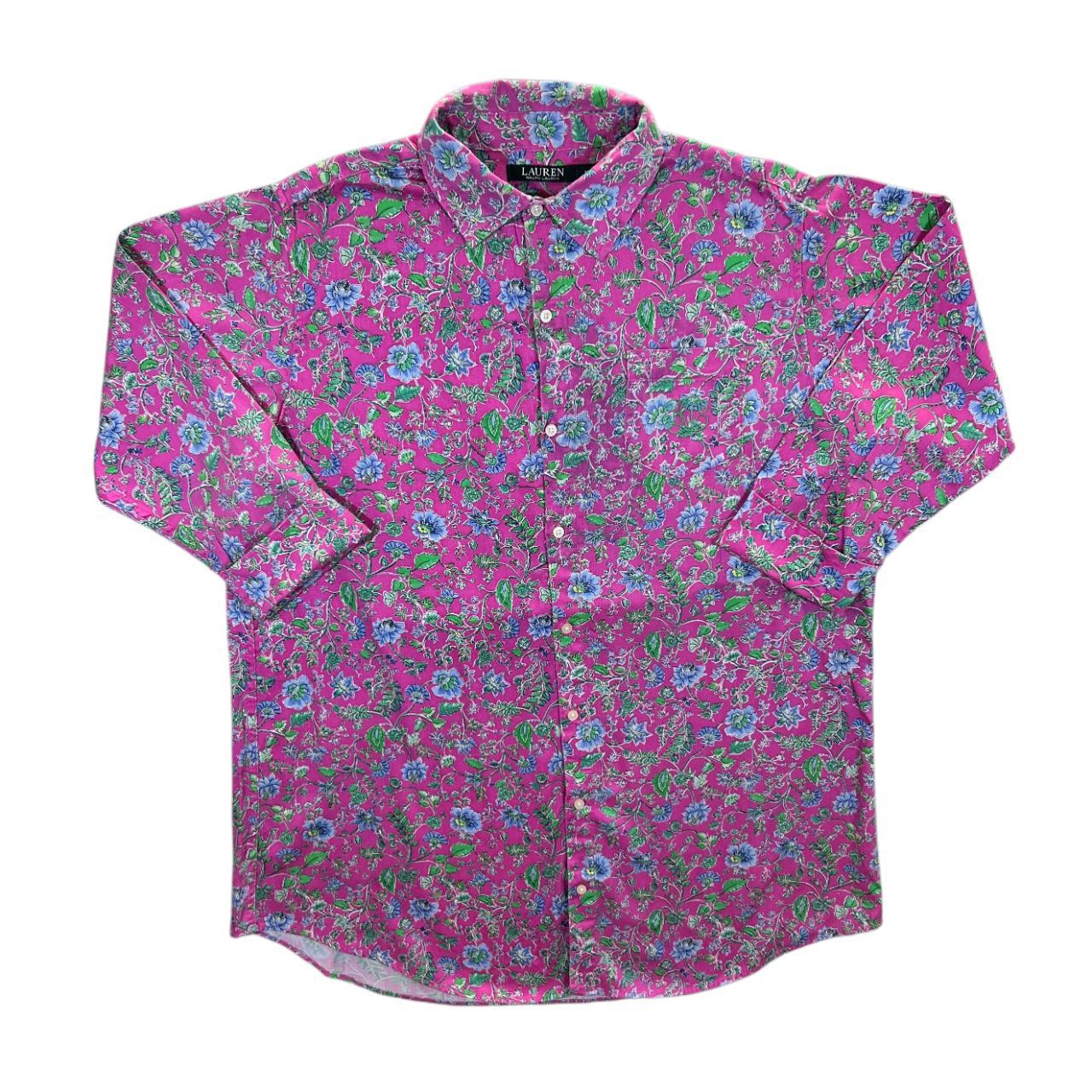 Lauren Ralph Lauren Floral Flower Patterned Purple Pink Rolled Sleeve Shirt