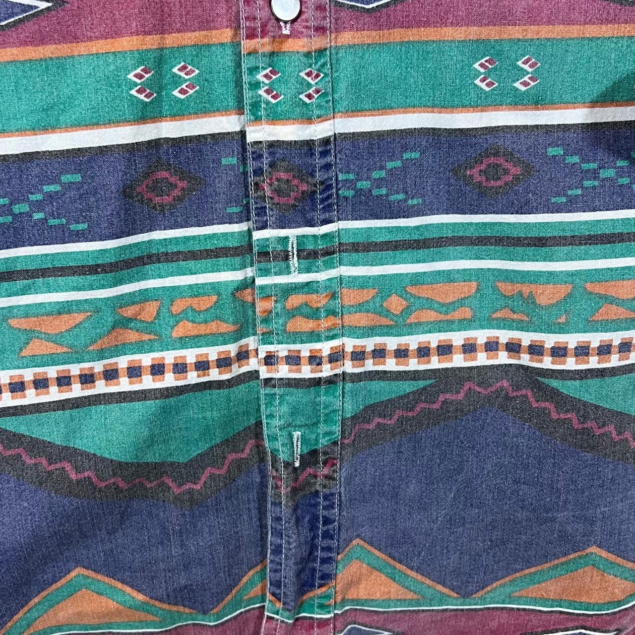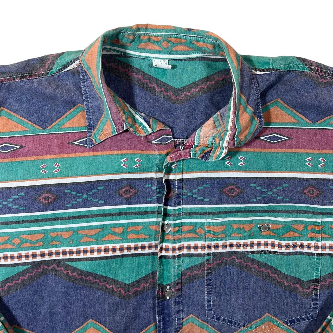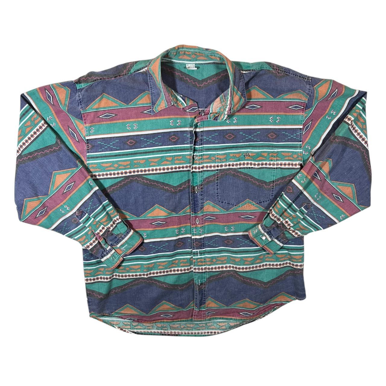 Vintage 90's Aztec Navajo Crazy Abstract Patterned Long Sleeve Cotton Shirt