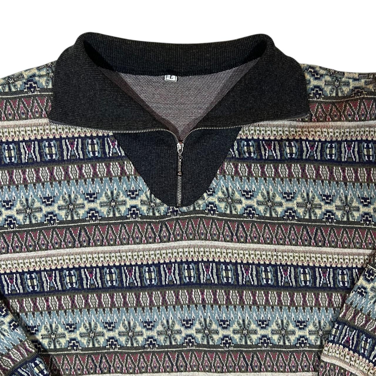 Vintage 90's Fairisle Crazy Patterned Cotton Blend 1/4 Zip Pullover Sweatshirt Top
