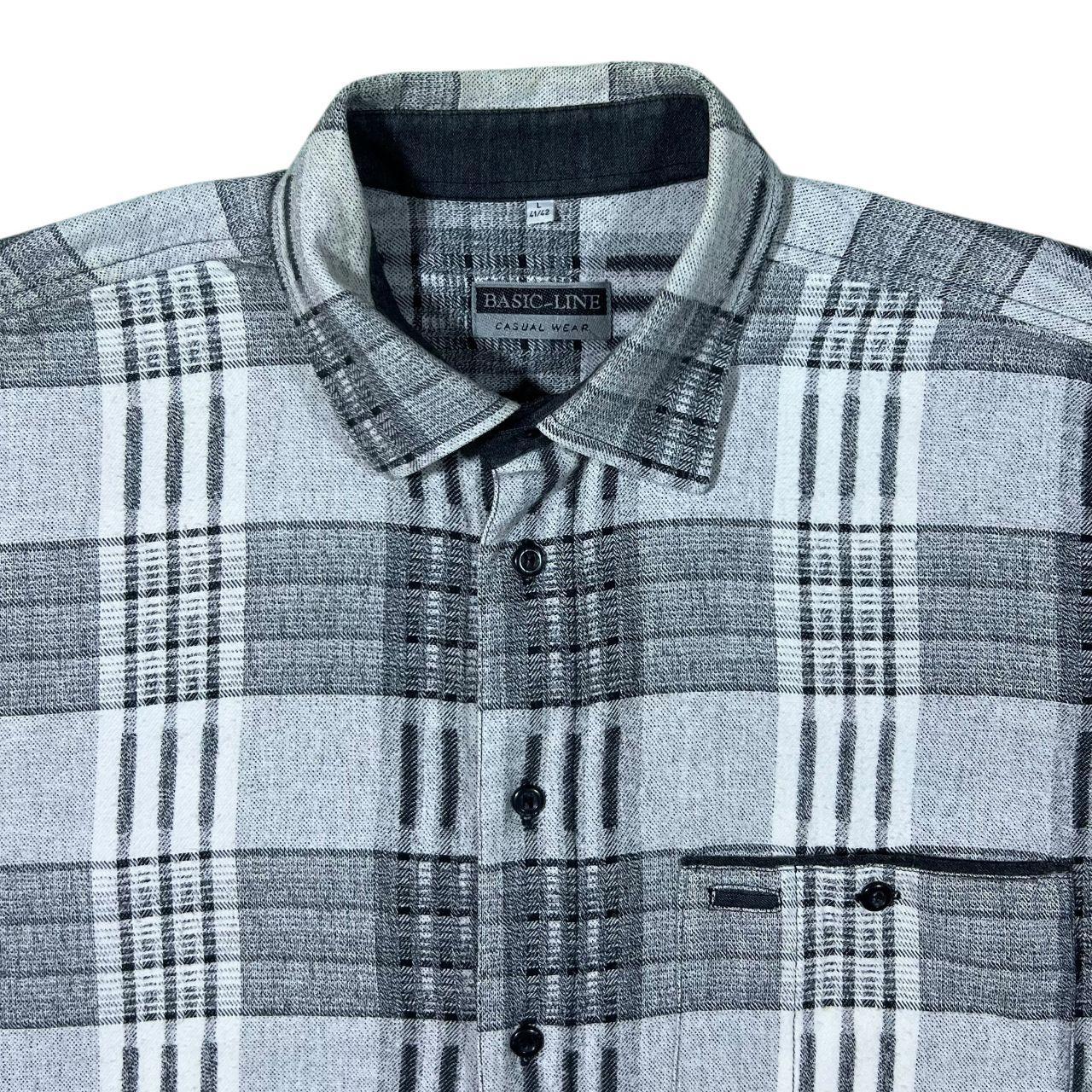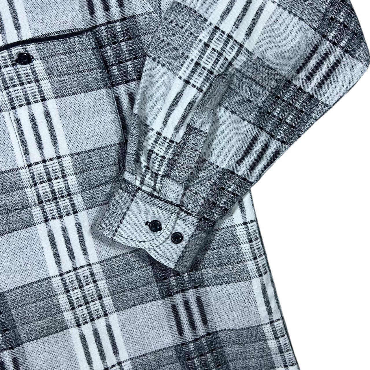 Vintage Basic Line Grey Black White Plaid Check Cotton Long Sleeve Flannel Shirt