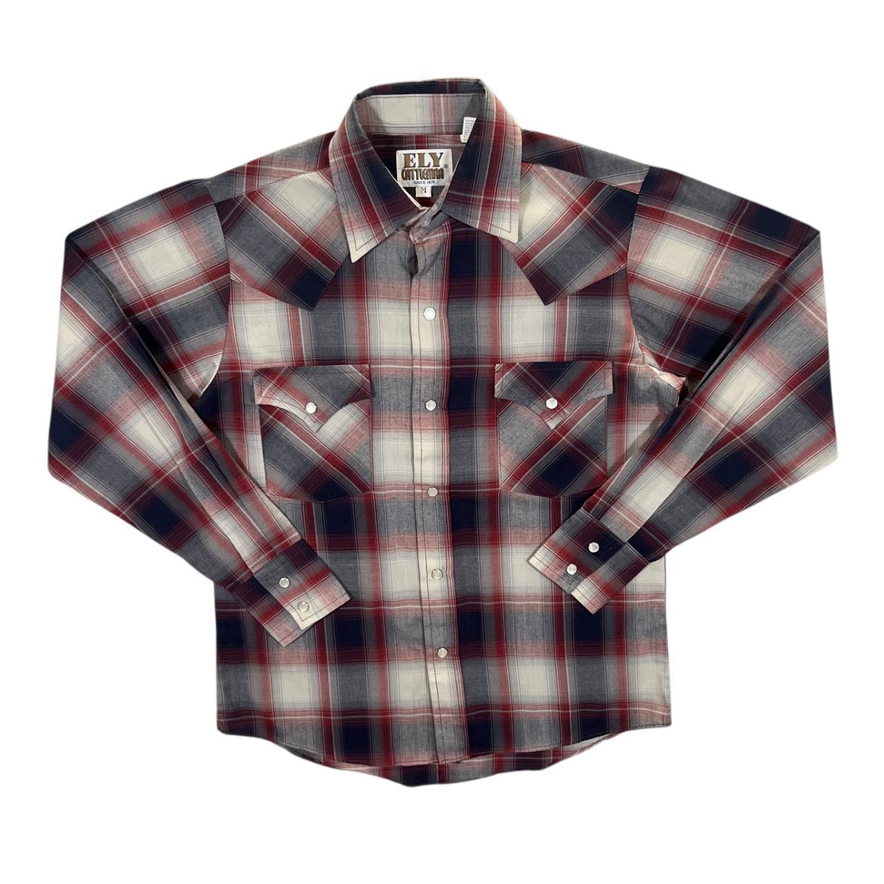 Vintage Ely Cattleman Cowboy Western Plaid Check Popper Long Sleeve Shirt