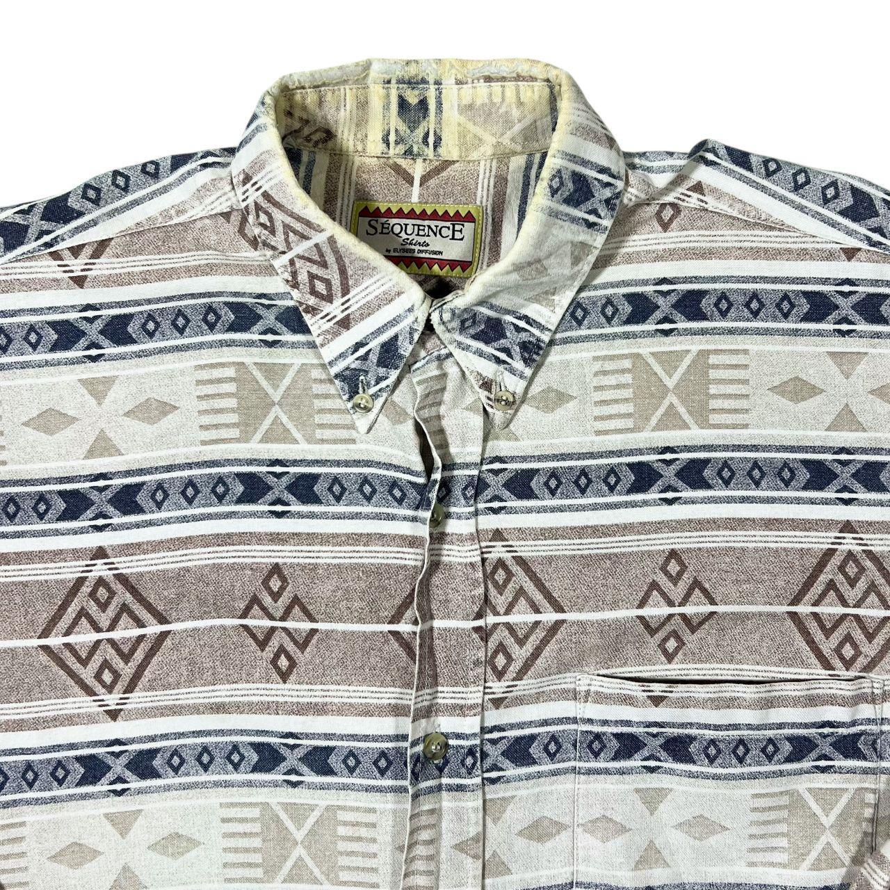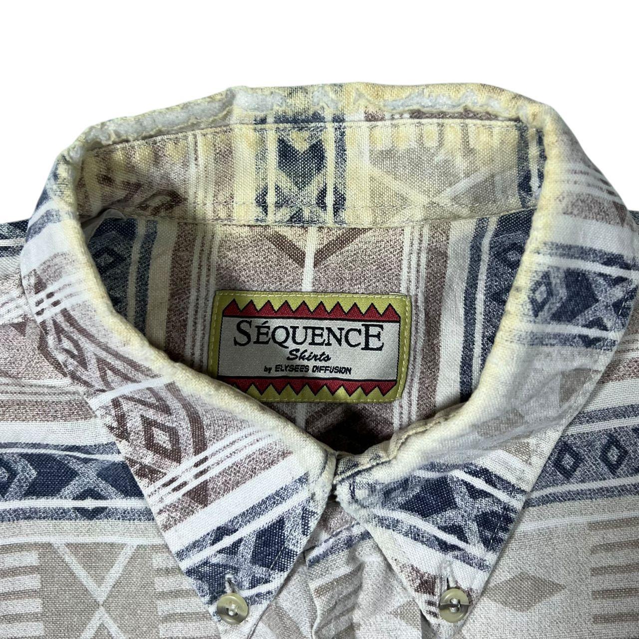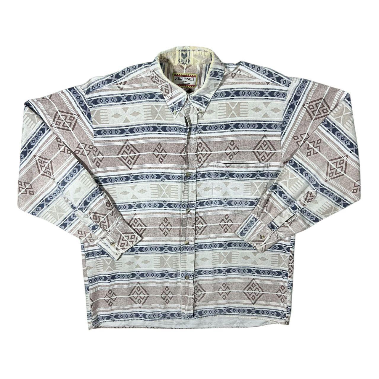 Vintage Elysees Diffusion Crazy Patterned Long Sleeve Flannel Button-Up Shirt