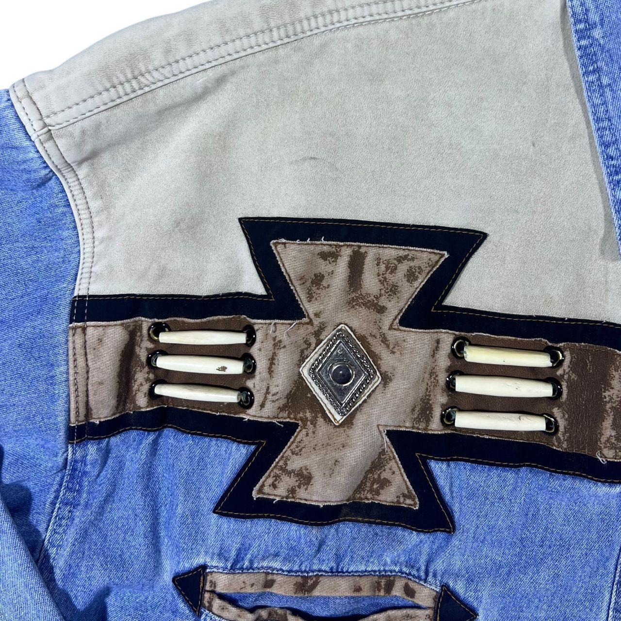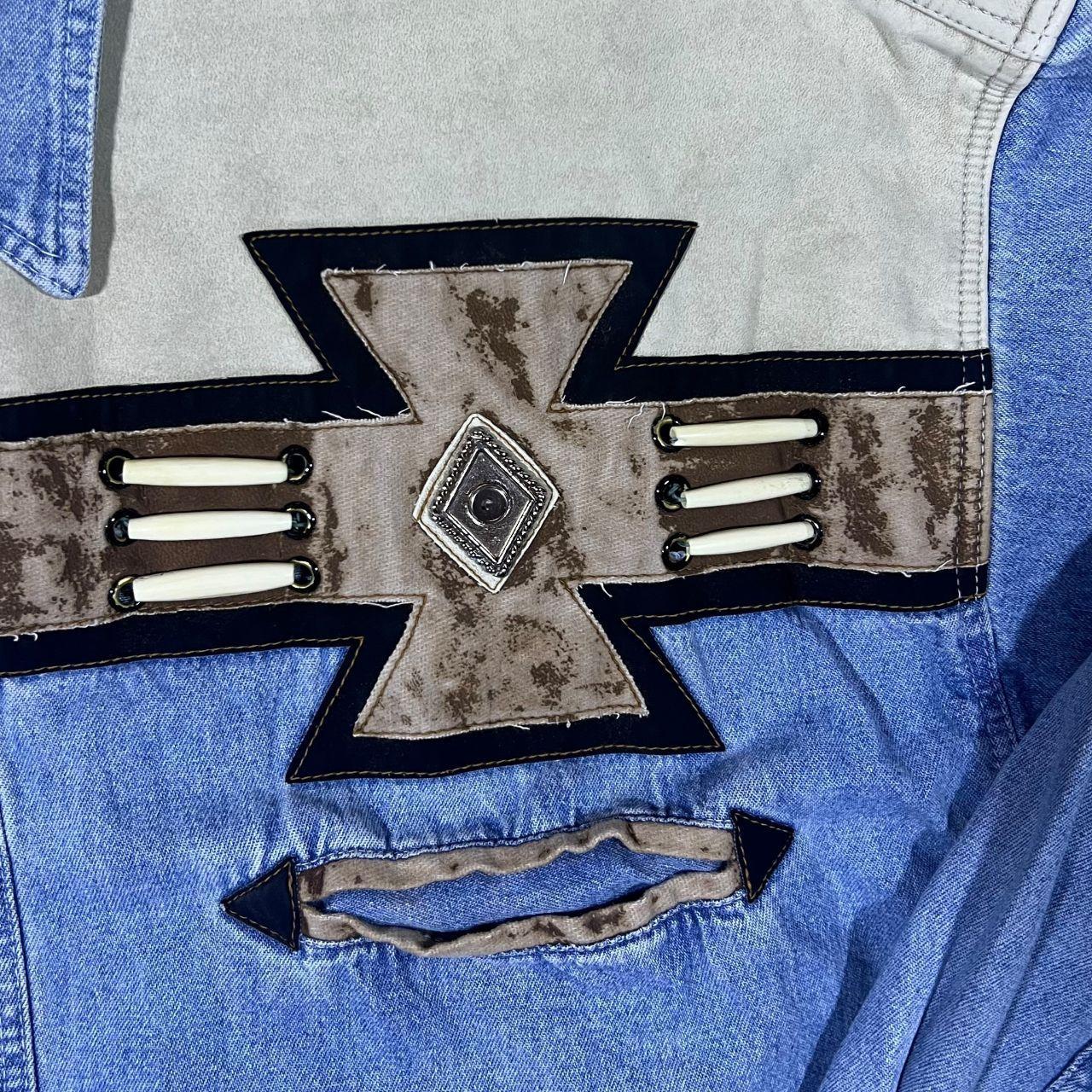 Vintage Rivergold Cowboy Western Blue Denim Long Sleeve Pearl Snap Popper Shirt