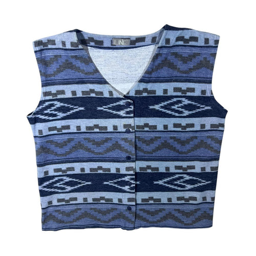 Vintage 90's LINE Crazy Abstract Patterned Blue Grey Mix Fleece Button Tank Top