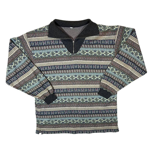 Vintage 90's Fairisle Crazy Patterned Cotton Blend 1/4 Zip Pullover Sweatshirt Top