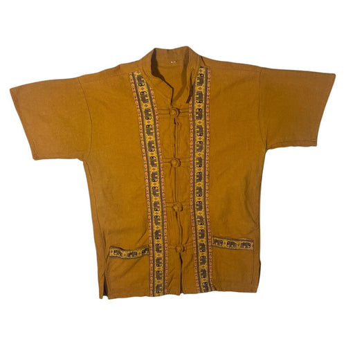 Vintage Orange Tribal Elephant Safari Knot Loop Cotton Short Sleeve Shirt