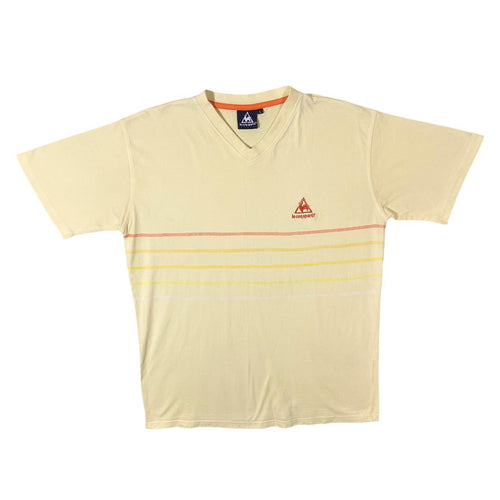 Early 00's Le Coq Sportif Embroidered Mini Logo Yellow V-Neck Cotton T-Shirt