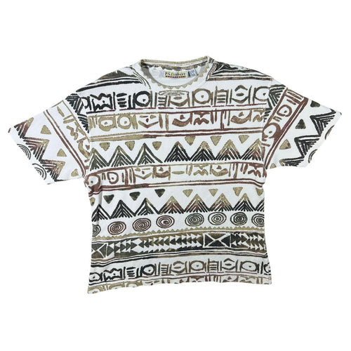 Vintage 90's P.S.Company Sportswear Crazy Abstract Patterned Waffle Cotton Thick T-Shirt