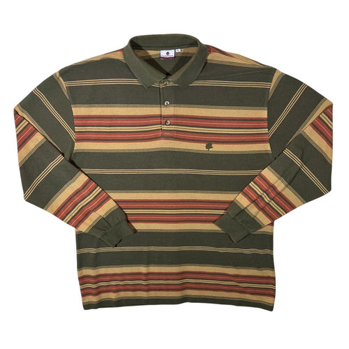 Vintage Laurent Cerrer Green Multi Striped Mini Logo Long Sleeve Polo Shirt