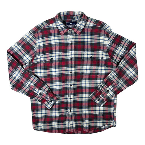 Vintage American Living Multi Plaid Check Long Sleeve Cotton Flannel Shirt