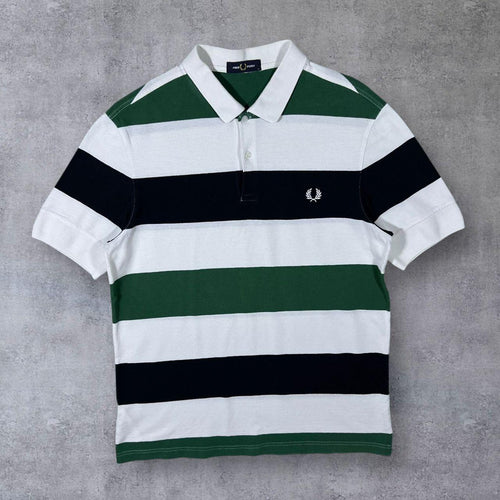 Fred Perry Green Black White Striped Mini Logo Cotton Polo Shirt