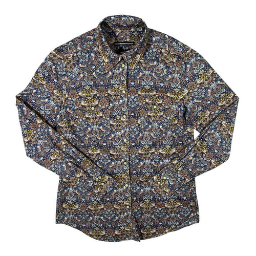 Gov Denim Cowboy Western Paisley Patterned Popper Cotton Long Sleeve Shirt