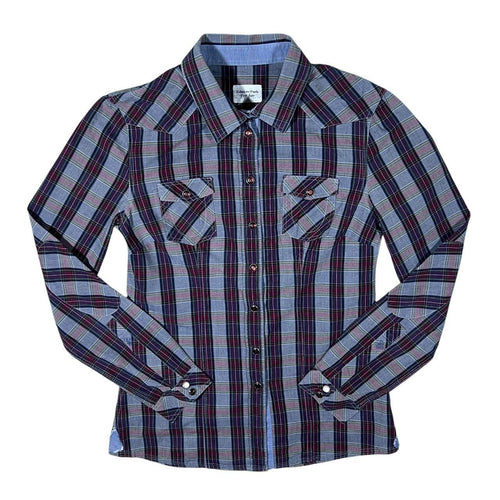 Garcia Jeans Cowboy Western Style Plaid Check Popper Long Sleeve Shirt