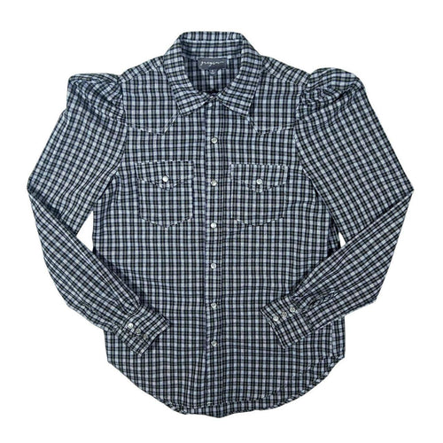Vintage Attrak Jeans Cowboy Western Black White Grey Plaid Check Long Sleeve Popper Shirt