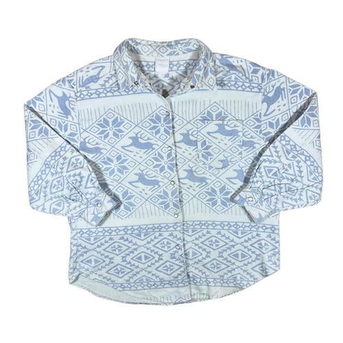 Vintage 90's Festive Deer Snowflake Patterned Popper Button Long Sleeve Flannel Shirt