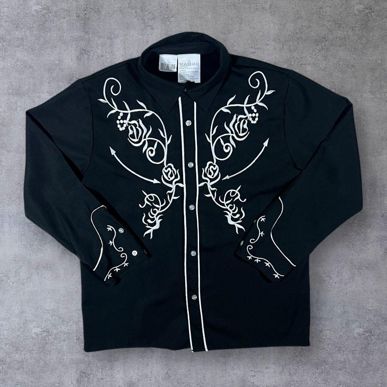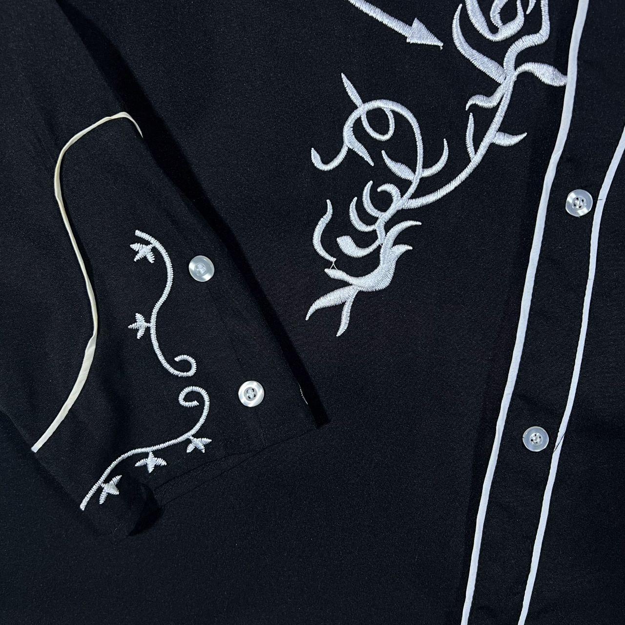Embroidered Cowboy Western Black Polyester Long Sleeve Shirt