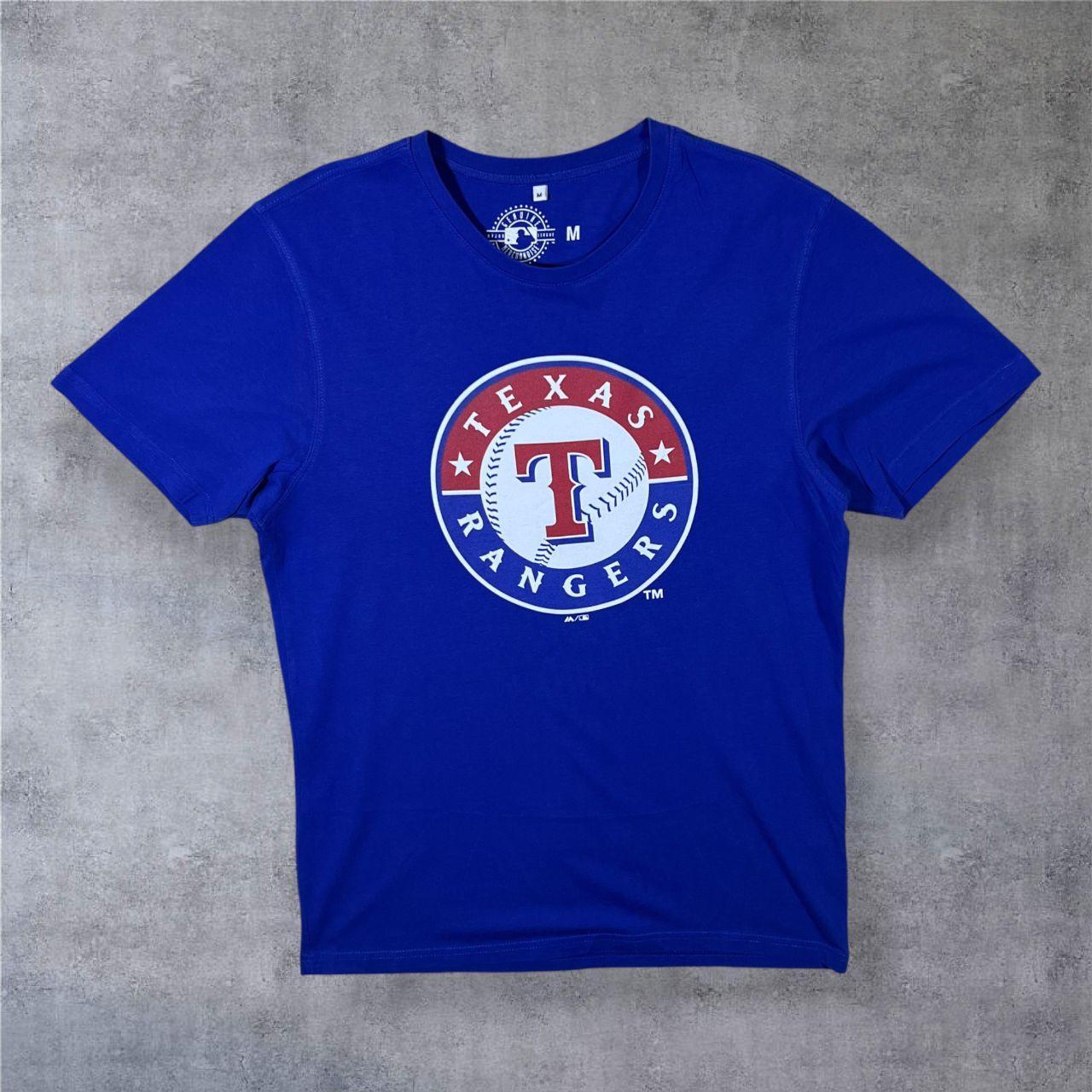 MLB Texas Rangers Big Logo Spellout Baseball Graphic Blue T-Shirt