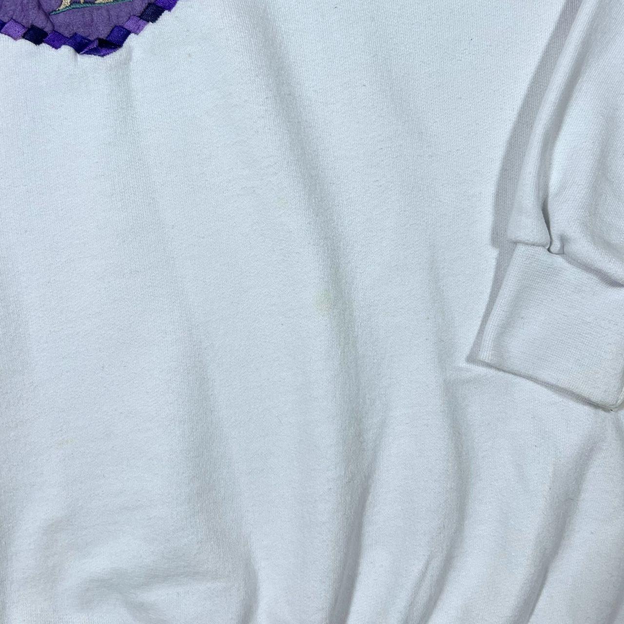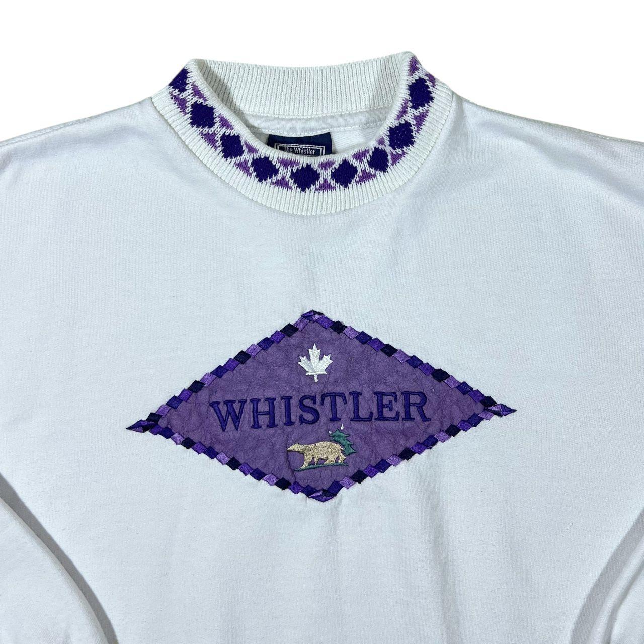Vintage Whistler Embroidered Spellout Patterned Collar White Crewneck Sweatshirt