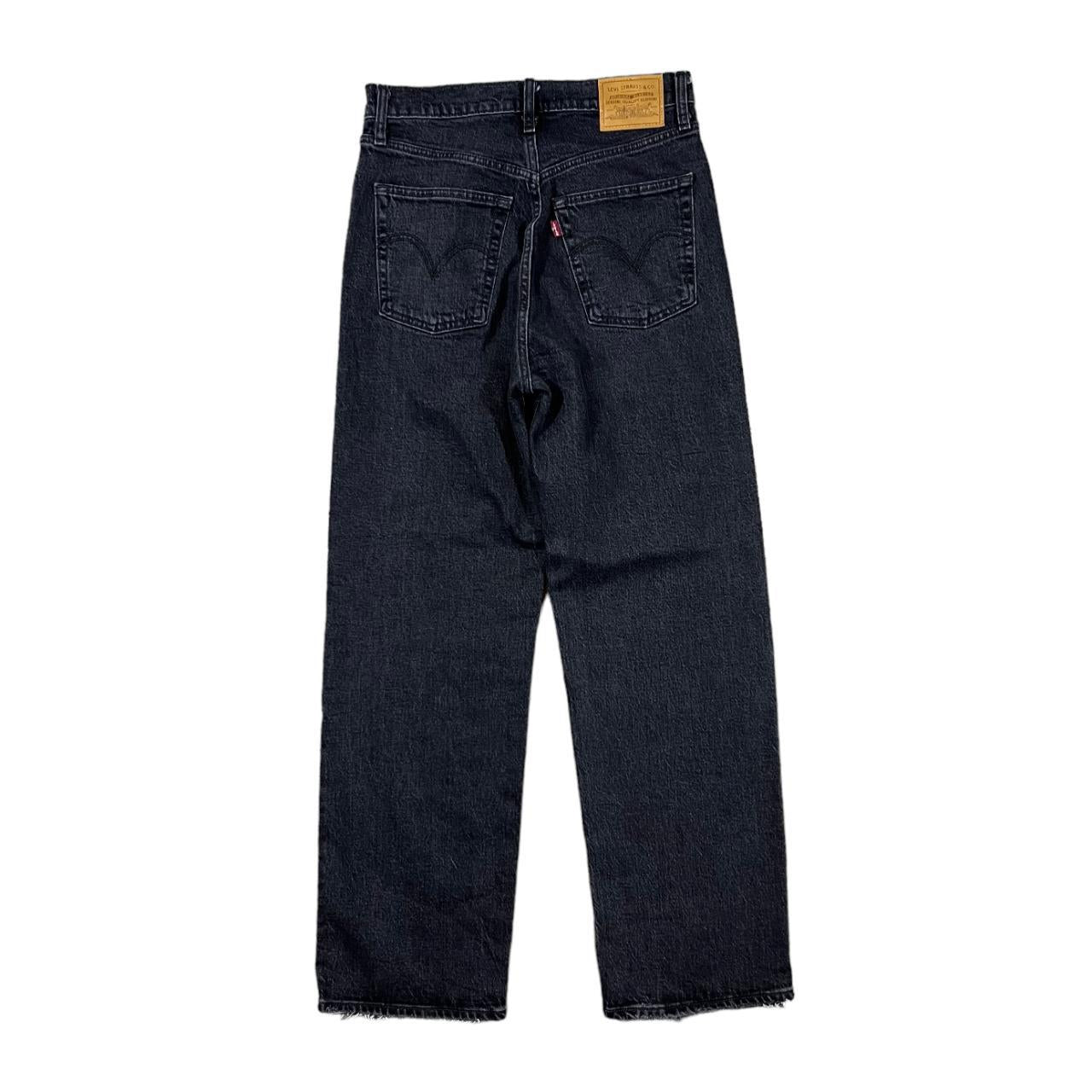 LEVI'S "Ribcage Straight" Classic Black Frayed Cuff Straight Leg Denim Jeans