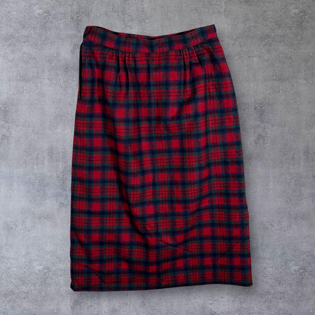 Vintage 90's Pendleton Made In USA Tartan Plaid Check Virgin Wool Skirt