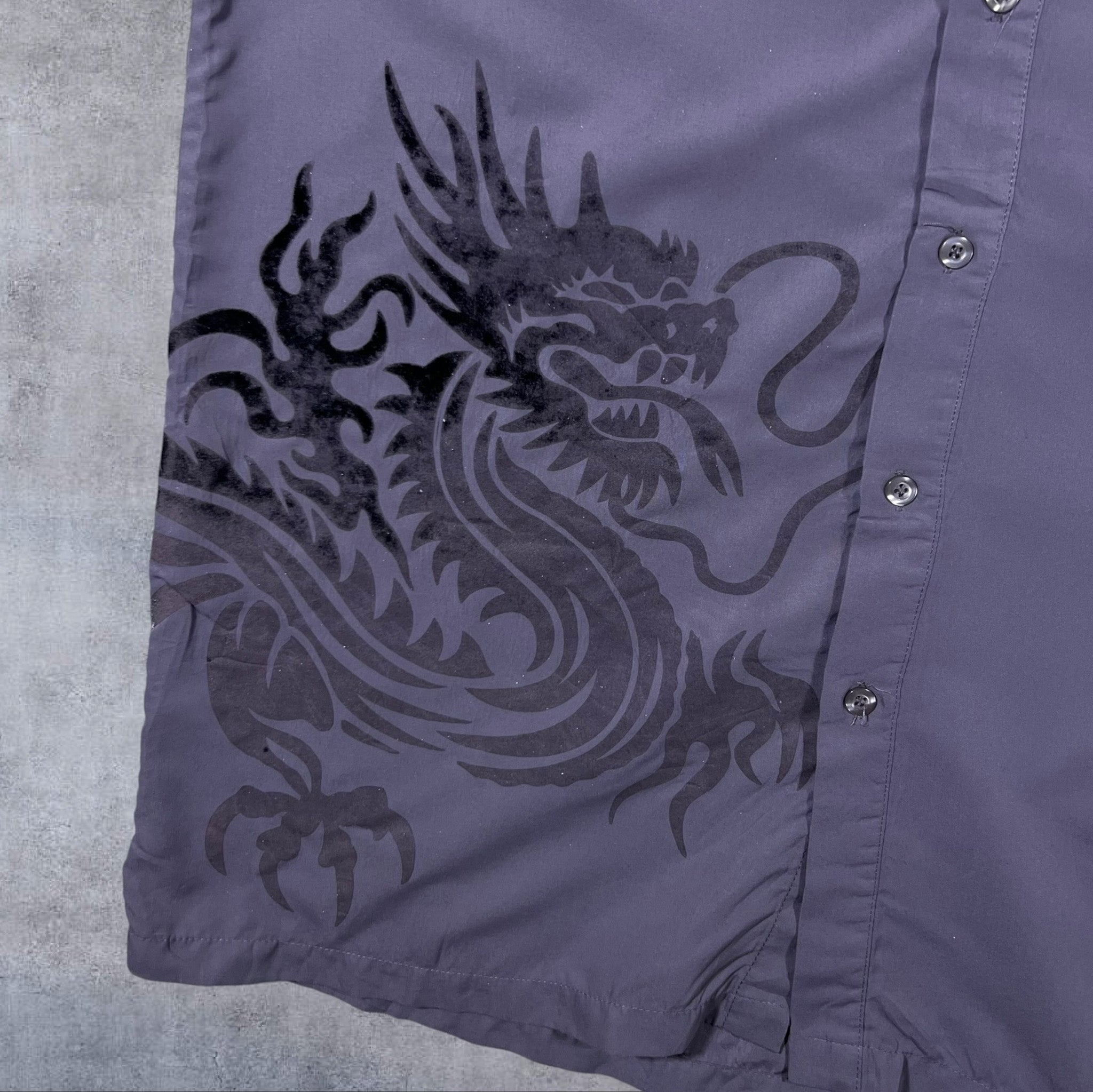 Early 00's Identic Goth Y2K Dragon Graphic Grey Layered Long Sleeve Shirt