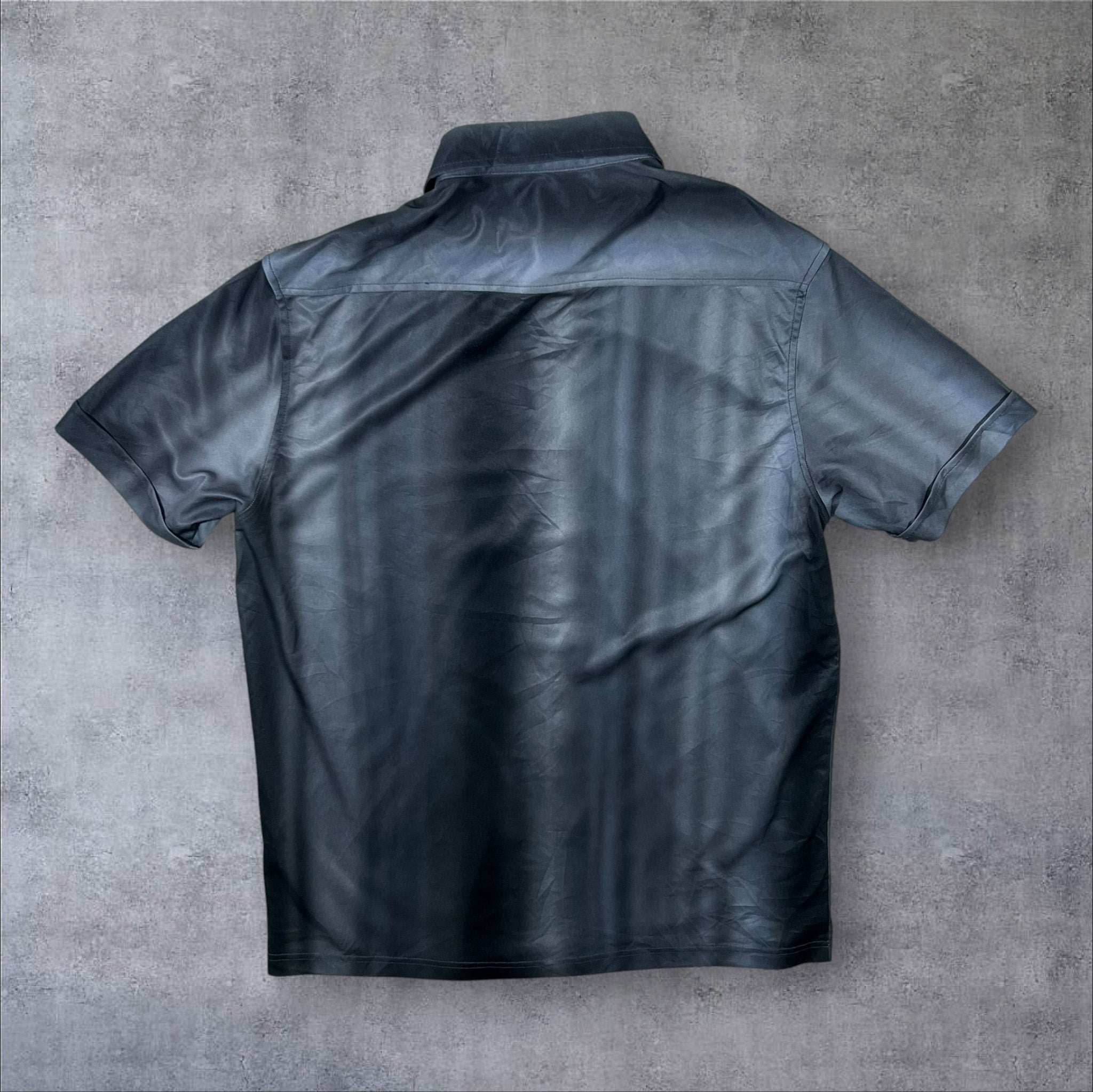 Early 00's Clockhouse C&A Goth Y2K Grey Mix Patterned Polyester Short Sleeve Shirt