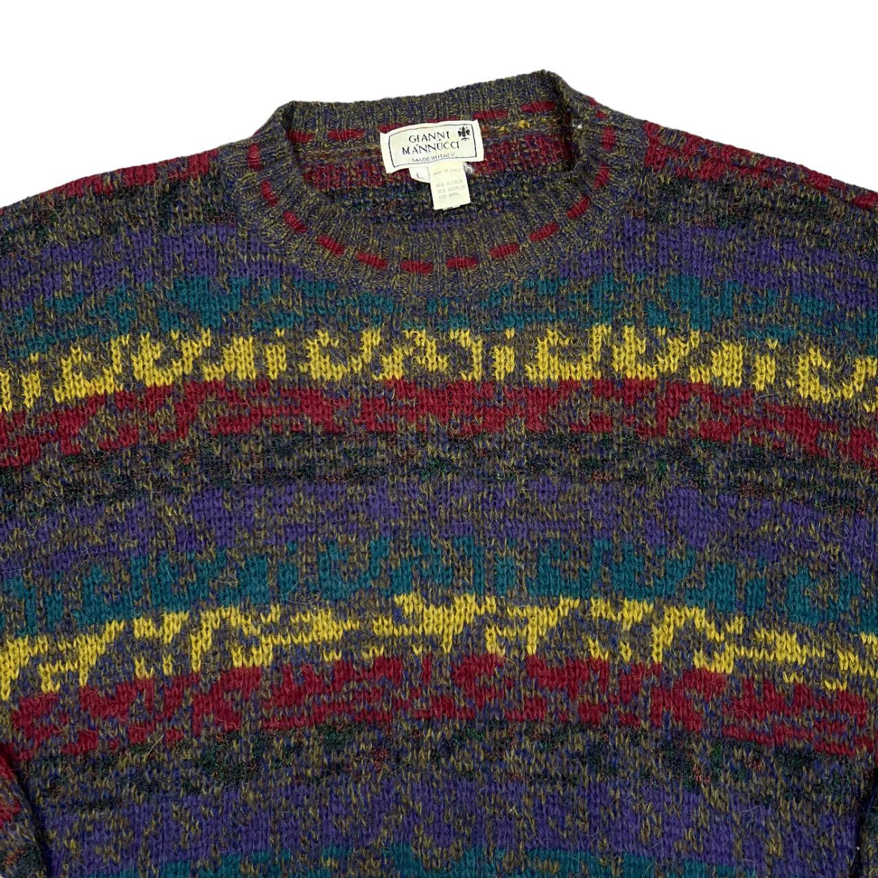 Vintage 90's GIANI MANNUCCI Made In Italy Grandad Patterned Alpaca Wool Acrylic Knit Crewneck Sweater Jumper
