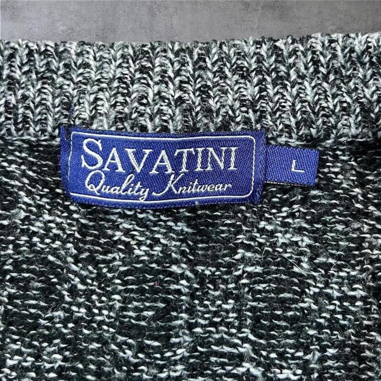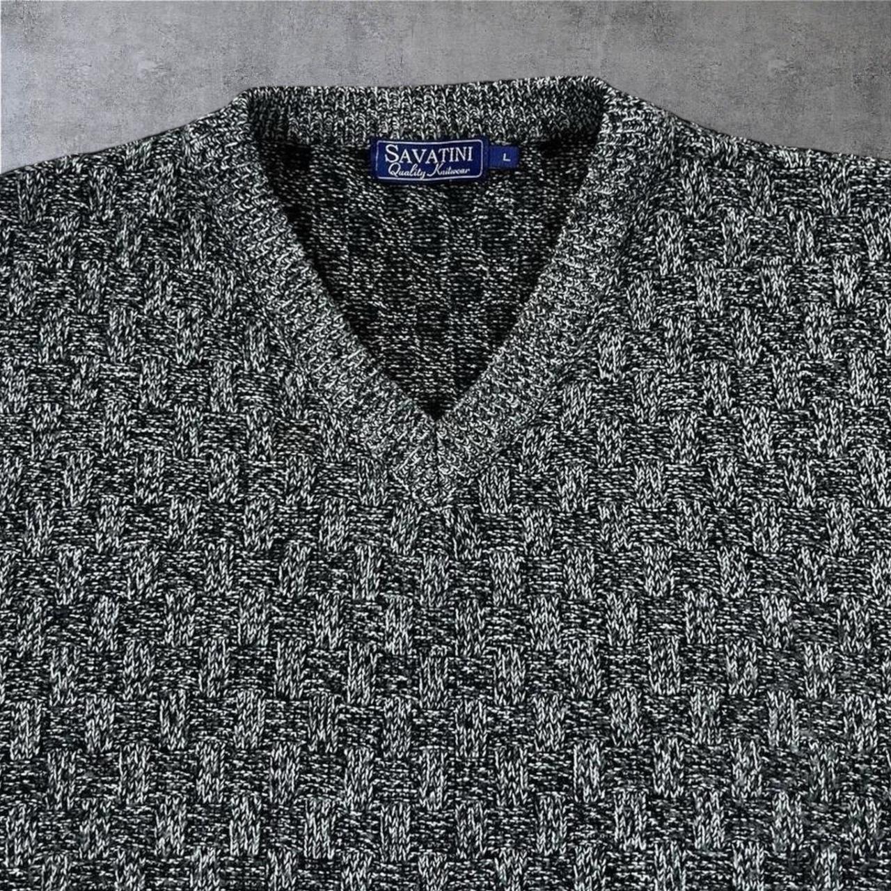 Vintage Savatini Classic Crosshatch Acrylic Knit V-Neck Sweater Jumper
