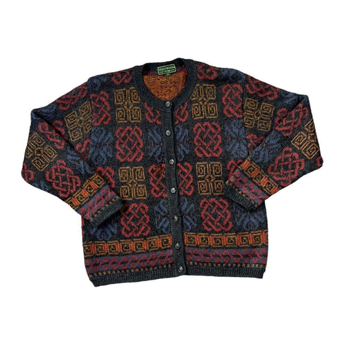 Vintage 90's ART & ANTIQUITY Grandad Cottage Core Patterned Wool Knit Button Cardigan Sweater Jumper