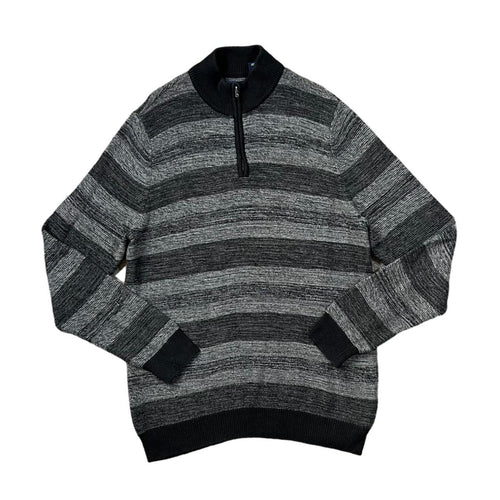 Early 00's CHAPS Black Grey Striped Cotton Knit 1/4 Zip Pullover Sweater Jumper