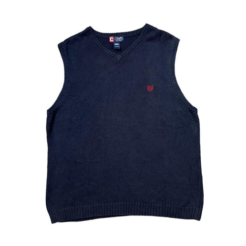 Early 00's CHAPS Classic Embroidered Mini Crest Logo Cotton Knit V-Neck Sweater Vest
