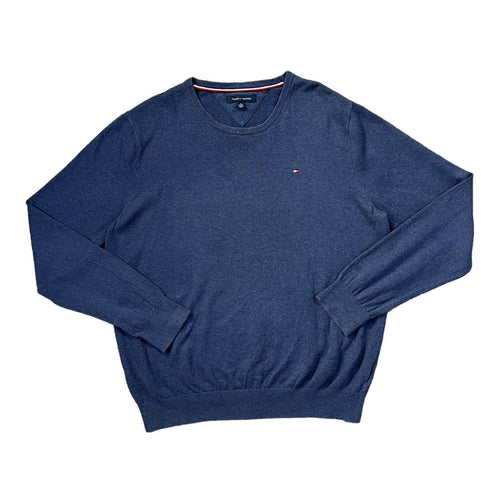 TOMMY HILFIGER Classic Blue Embroidered Mini Logo Knit Sweater Jumper