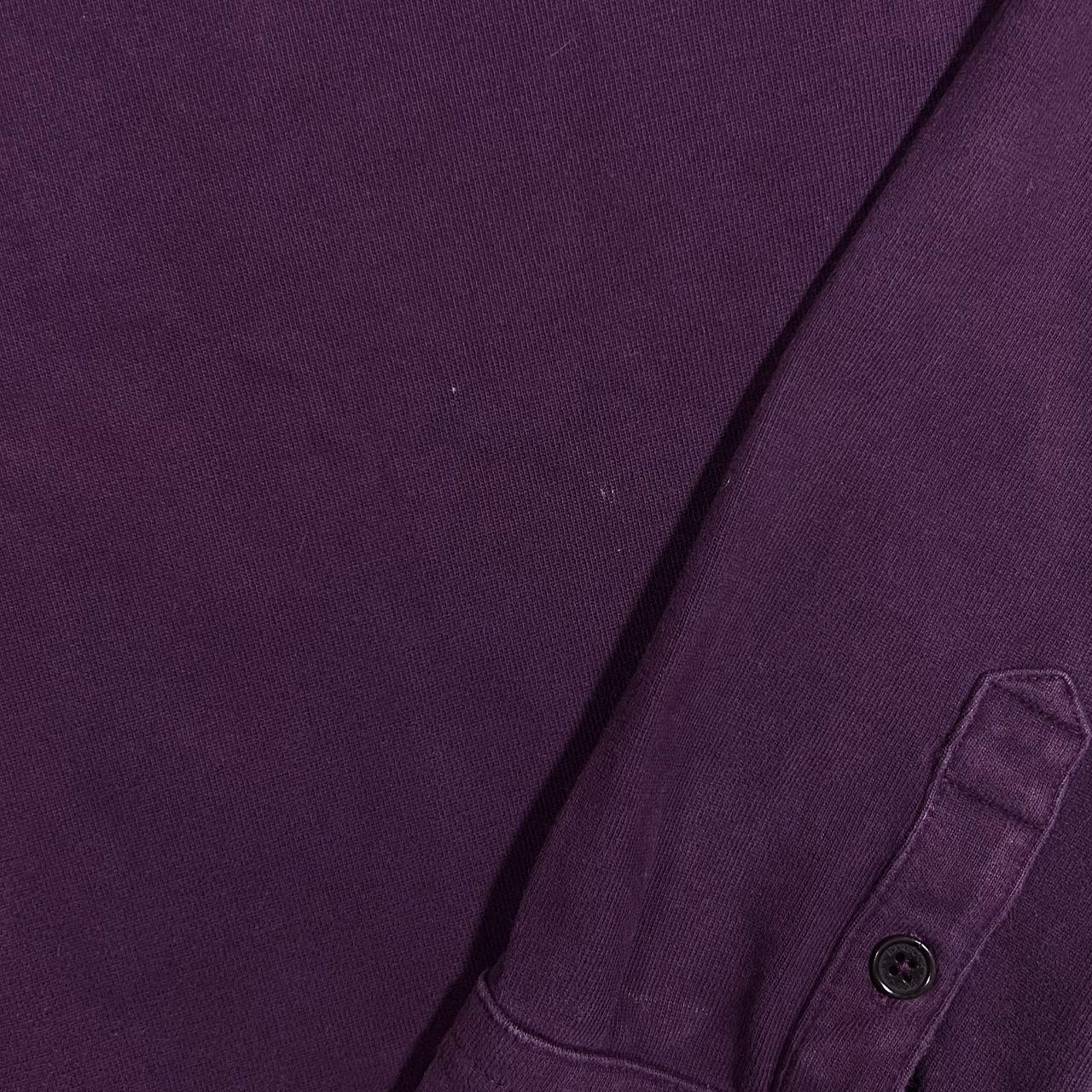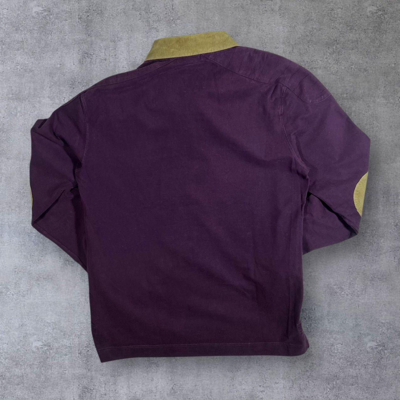 Barbour Embroidered Logo Corduroy Cord Trim Burgundy Long Sleeve Rugby Polo Shirt