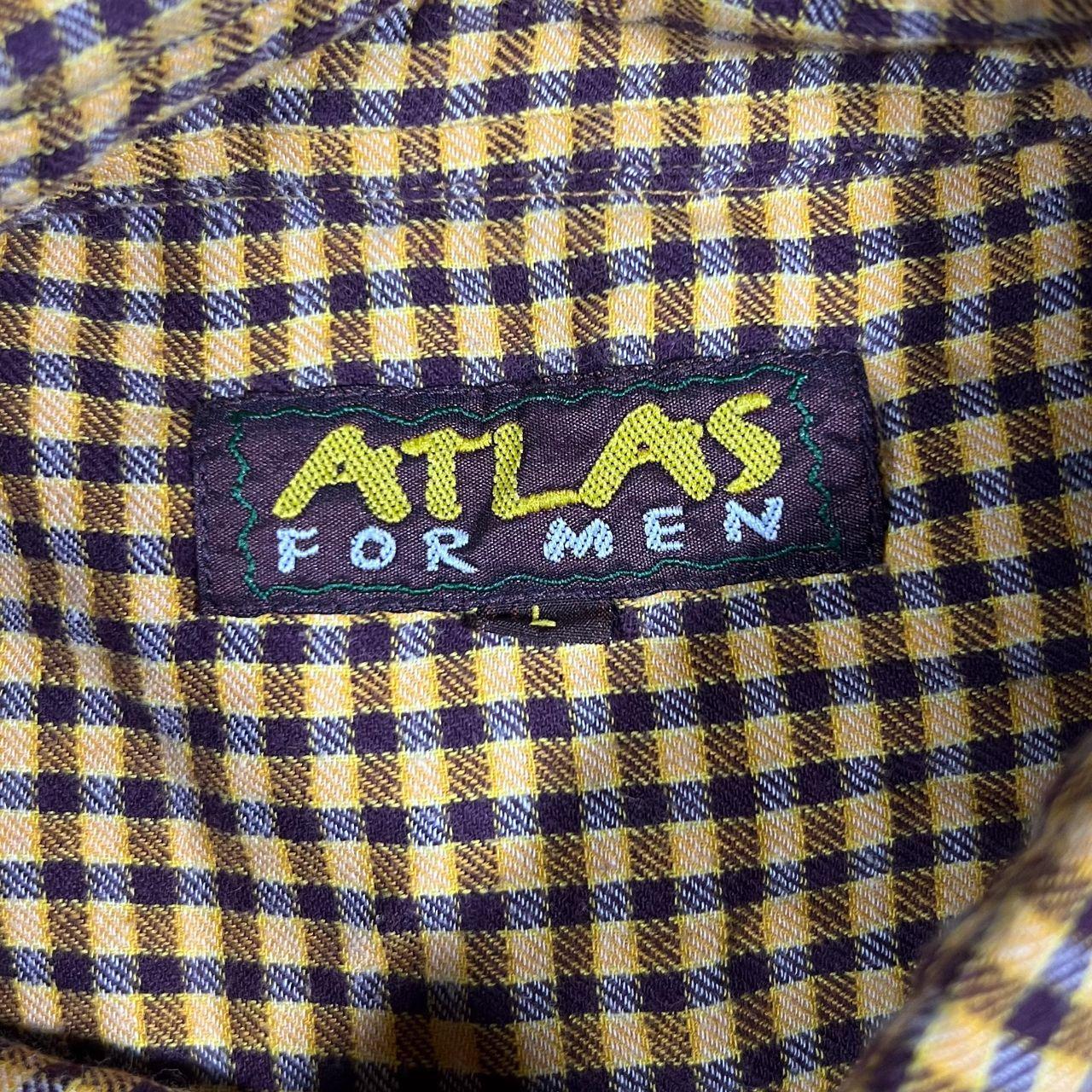 Early 00's Atlas For Men Plaid Check Long Sleeve Cotton Flannel Shirt