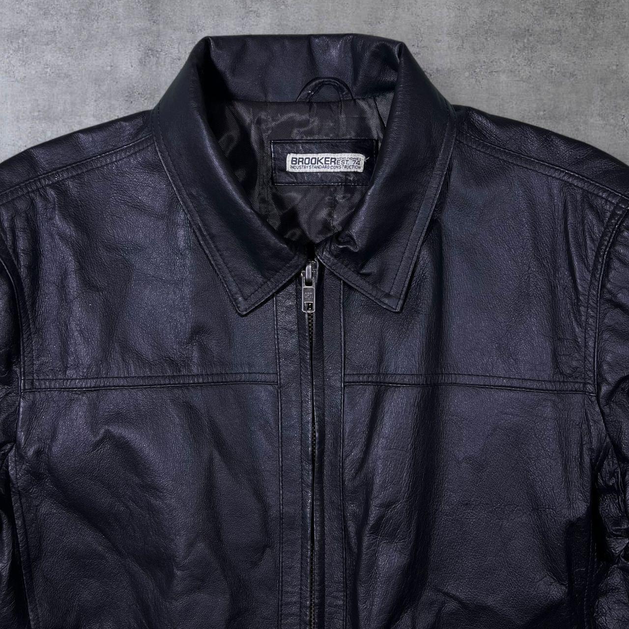 Early 00's Brooker Classic Black Genuine Real Leather Zip Bomber Jacket