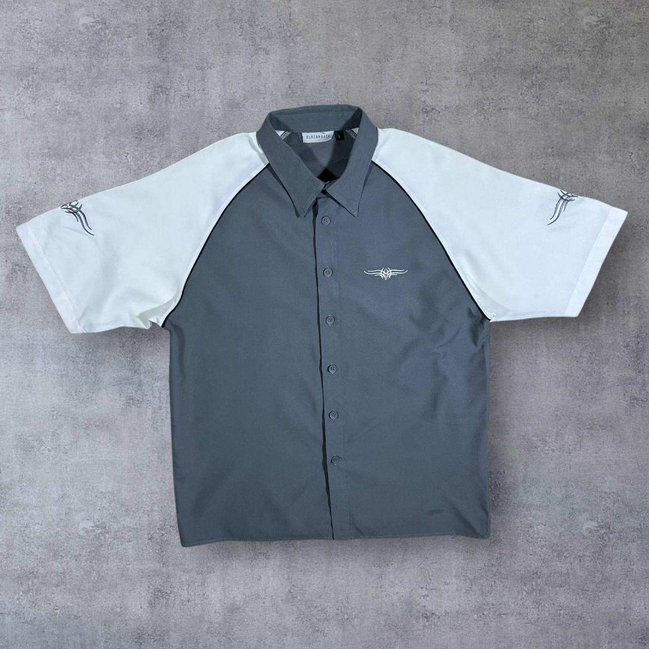 Early 00's Clockhouse Gothic Y2K Tribal Embroidered Grey White Short Sleeve Shirt