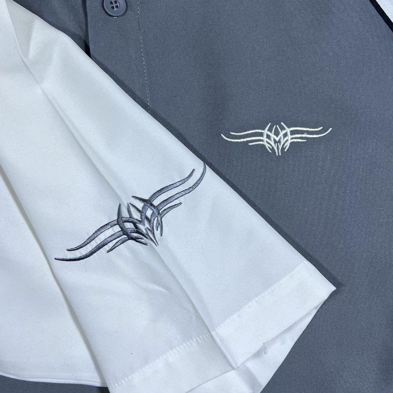 • Load image into Gallery viewer, Early 00's Clockhouse Gothic Y2K Tribal Embroidered Grey White Short Sleeve Shirt