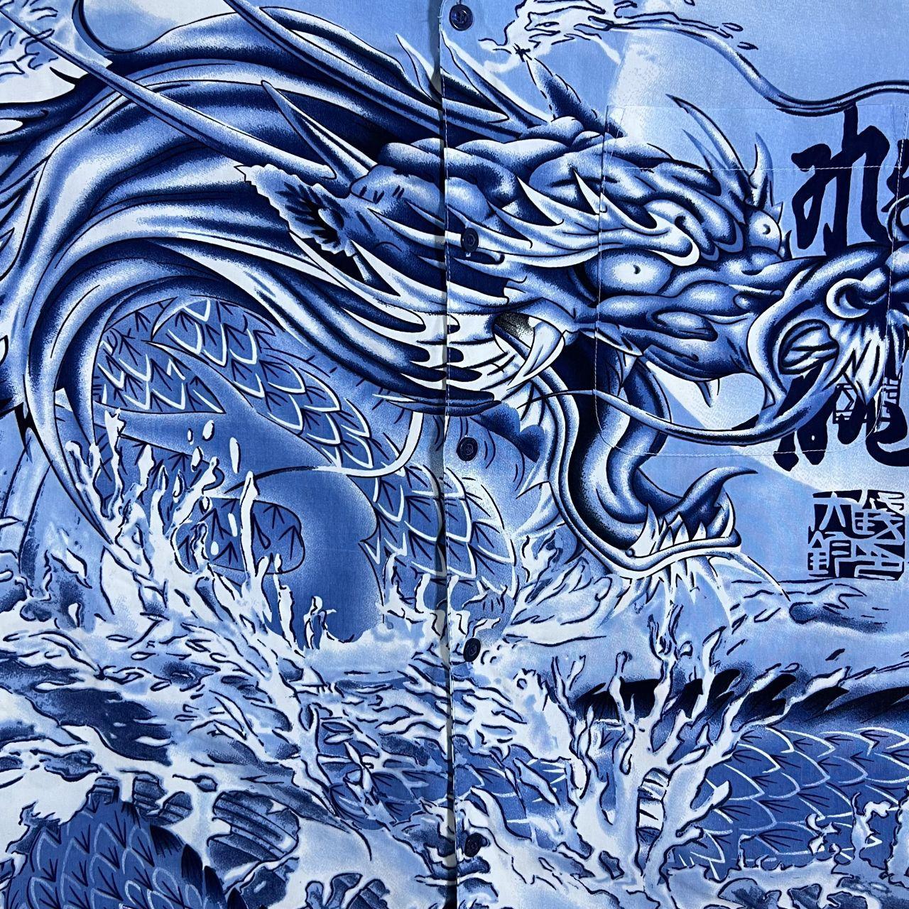 Early 00's Impaq Gothic Y2K Dragon Hip Hop Graphic Blue Short Sleeve Shirt