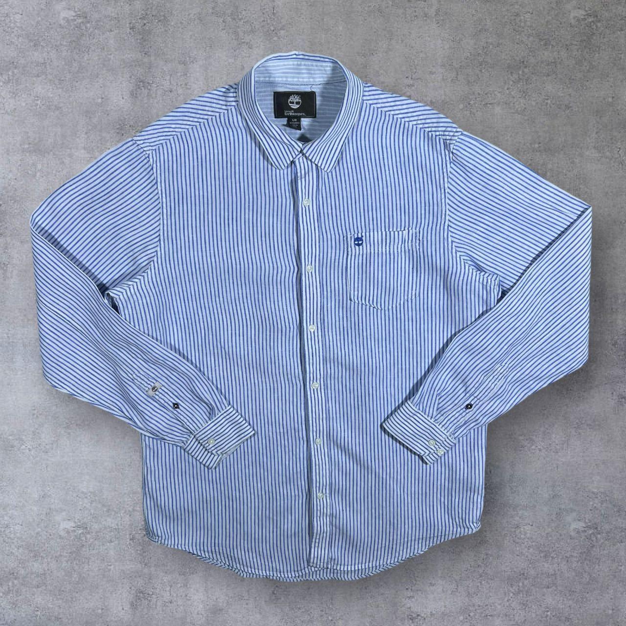Timberland Earthkeepers "Regular Fit" Blue White Striped Linen Long Sleeve Shirt