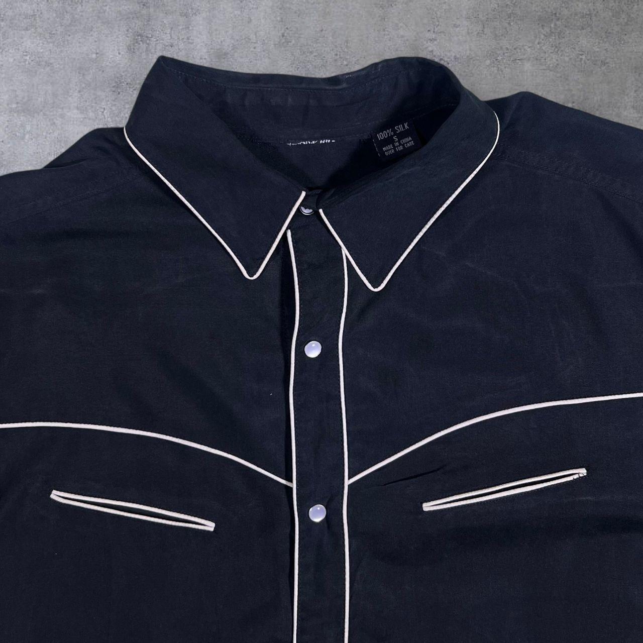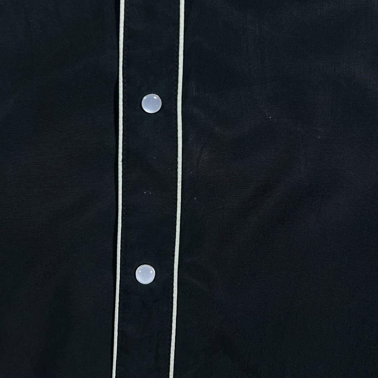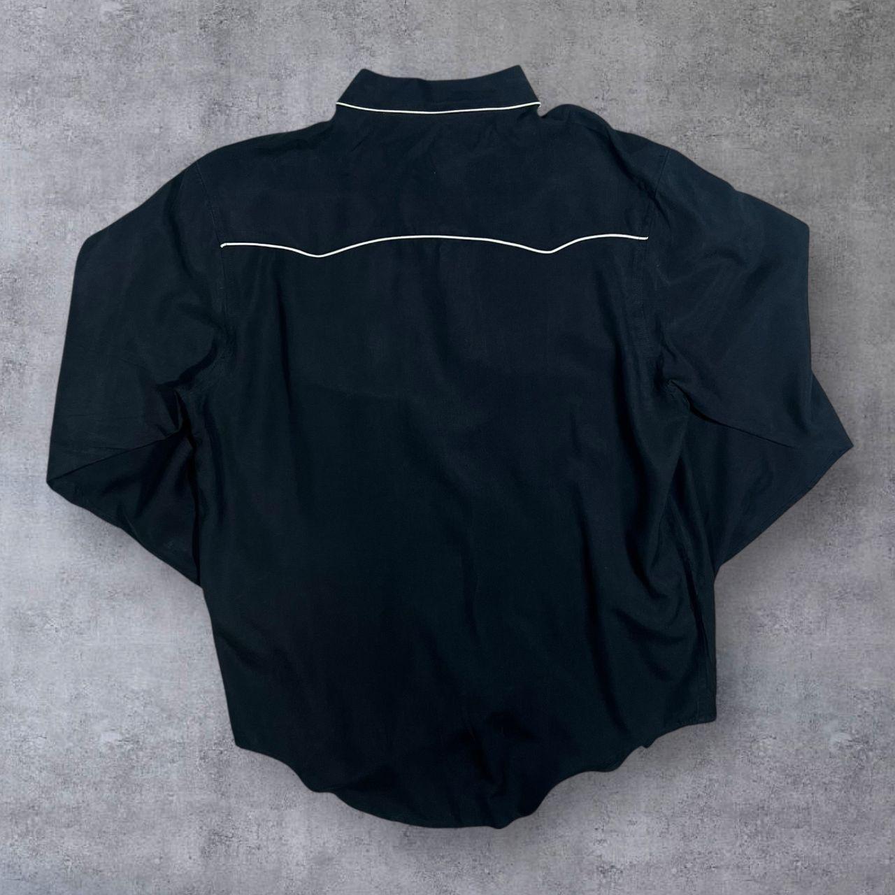 Vintage 100% Silk Cowboy Western Popper Button Black Long Sleeve Shirt