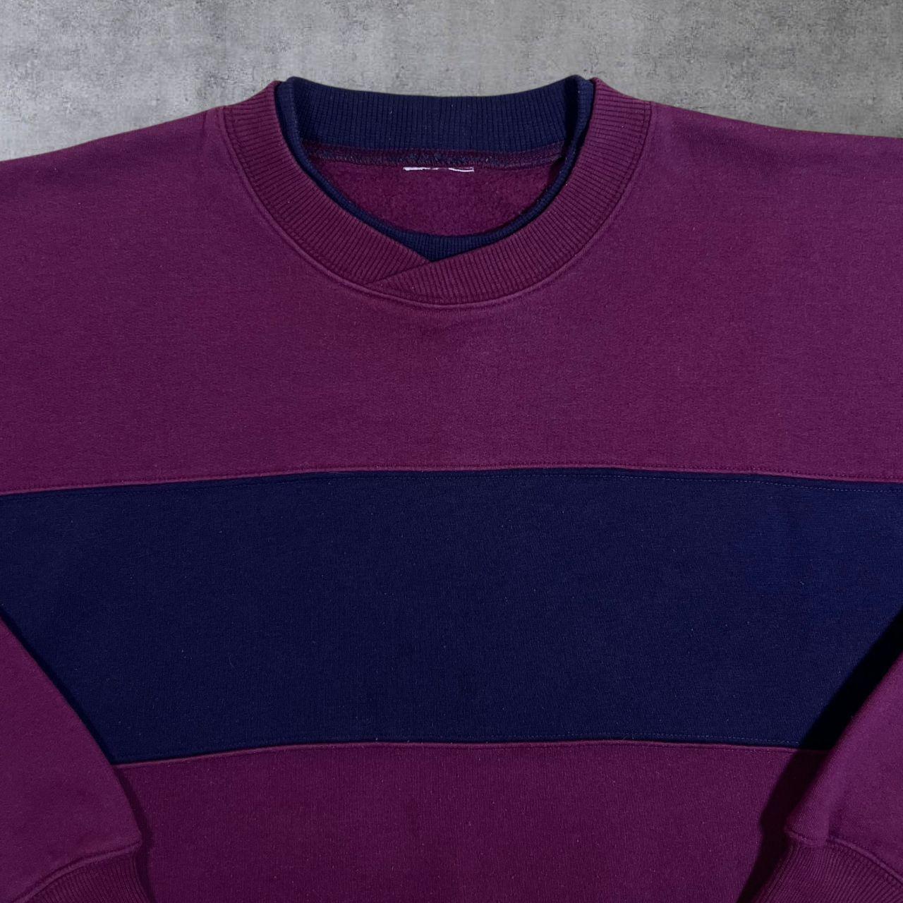 Vintage Burgundy Maroon Navy Blue Colour Block Crewneck Sweatshirt