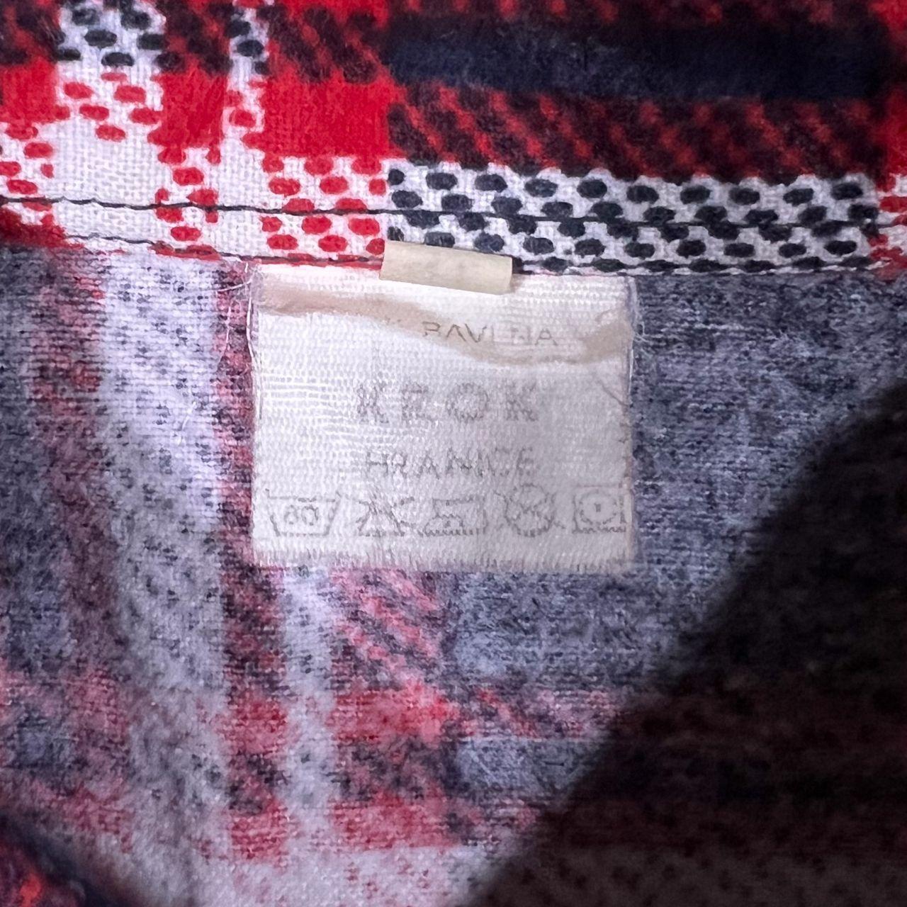 Vintage KROK Red Dark Navy White Plaid Check Long Sleeve Cotton Flannel Shirt