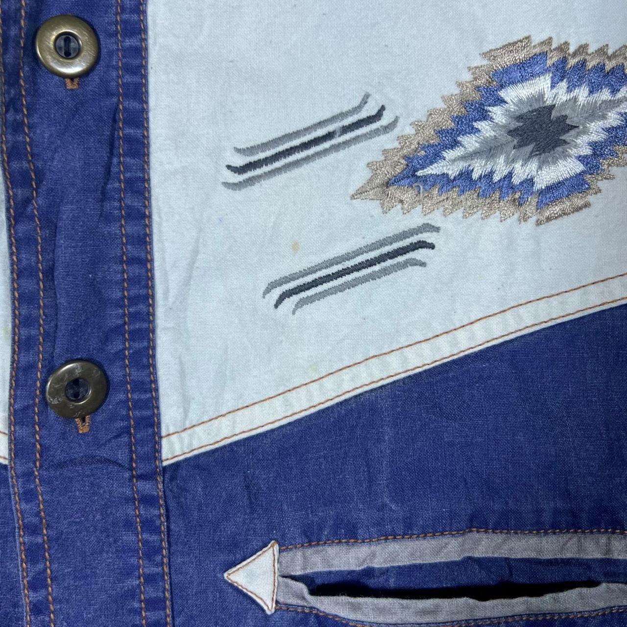 Vintage Natural Option Cowboy Western Embroidered Blue Cotton Long Sleeve Shirt