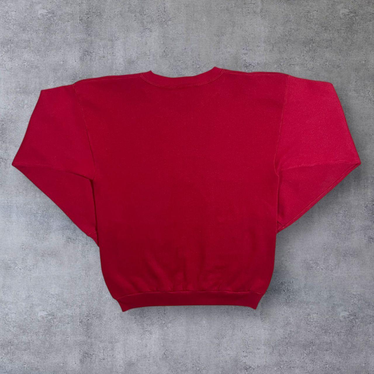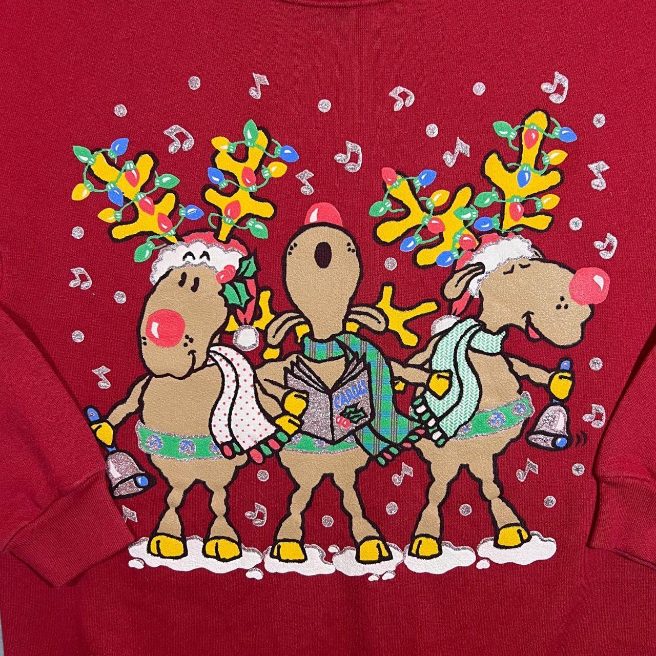 Vintage Tultex Christmas Reindeer Festive Cartoon Graphic Red Sweatshirt